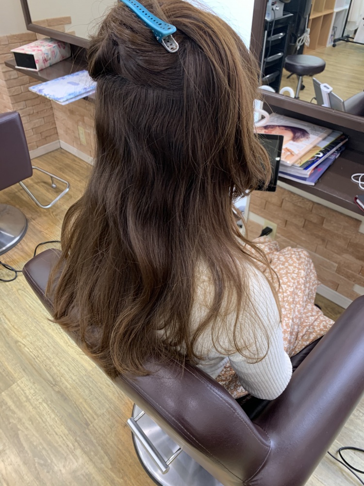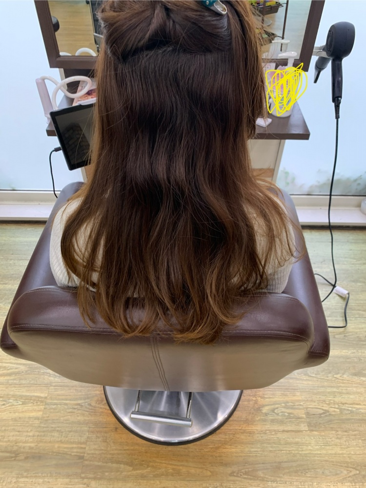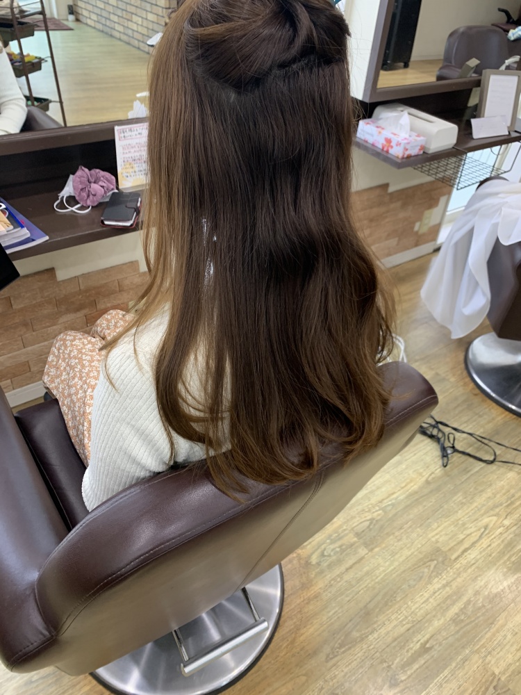 髪質に合った弱め薬剤をタイム長め(MAX40分)にしてトリートメントは内部強化と熱耐性してアイロンは一回で決めるイメージですね、ざっくり説明です。