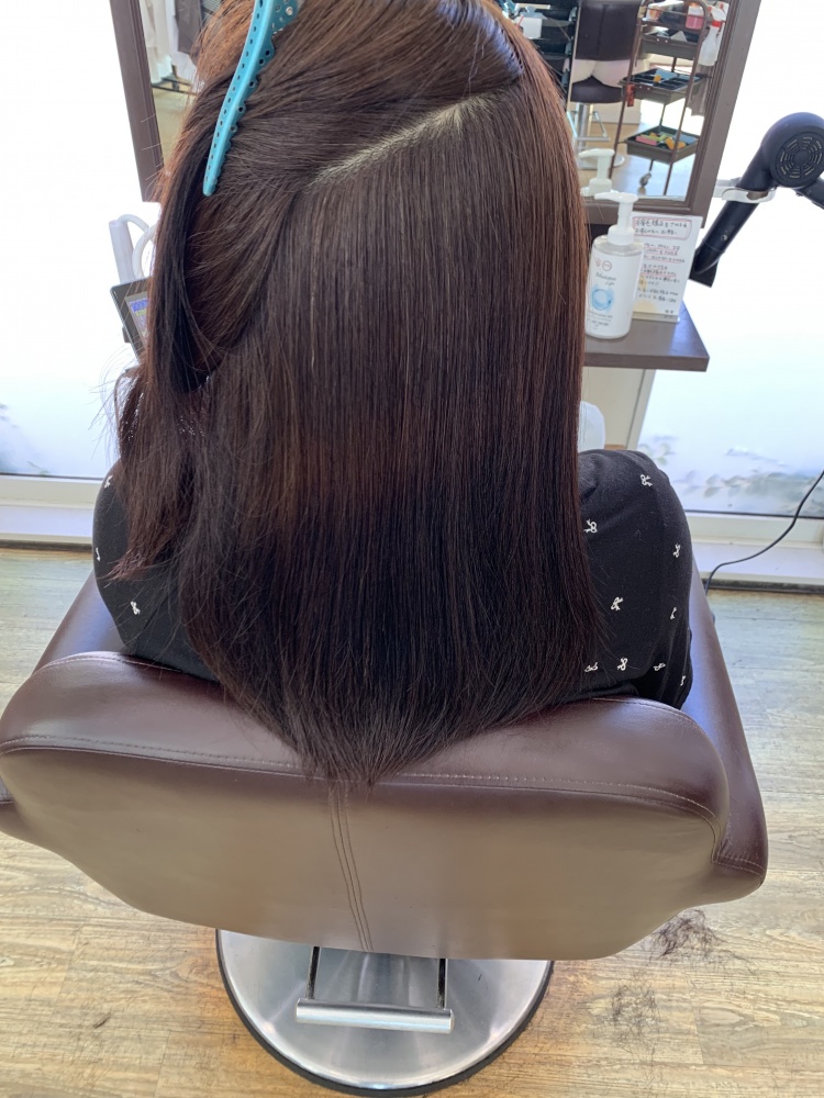 元々の縮毛矯正も残ってましたので栄養補給するだけでさらさらの真っ直ぐ、かつ柔らかさも出ます。万能なトリートメントや。。。