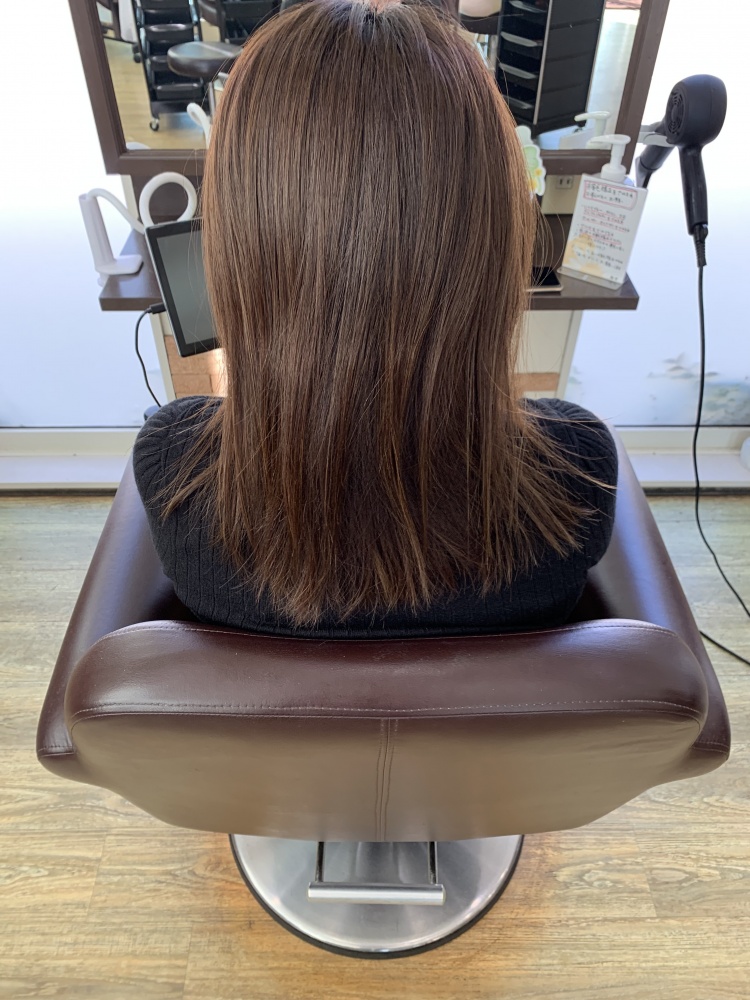 縮毛矯正で癖っ毛の凸凹を無くしたのとカットで傷んだところを無くしたので圧倒的に手触りが向上!ストレスが無くなると思います。