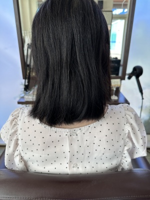 本当理想はもう少し髪を減らして(すきバサミで)軽さを出すのも考えたのですが癖っ毛が伸びたら暴れやすいかなと思い毛量に大してやや少なめの毛量調整で仕上げました✨
