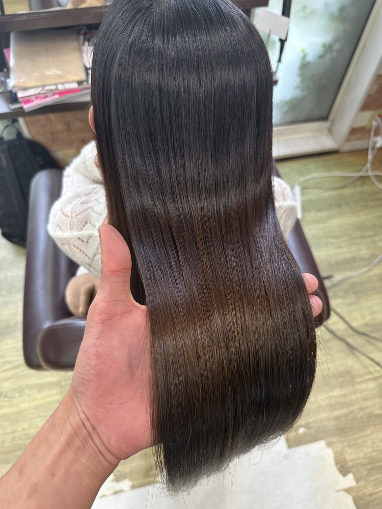 とんでもなく綺麗になりました✨根本から毛先まで均一に艶と面が揃ってピカピカです。