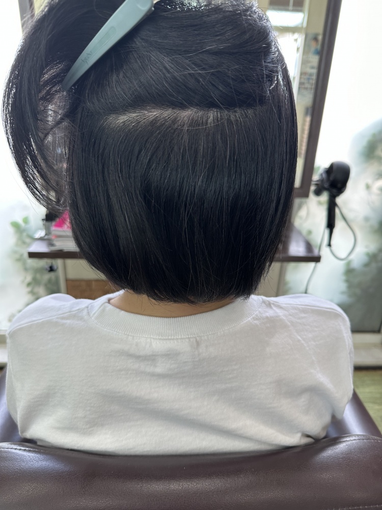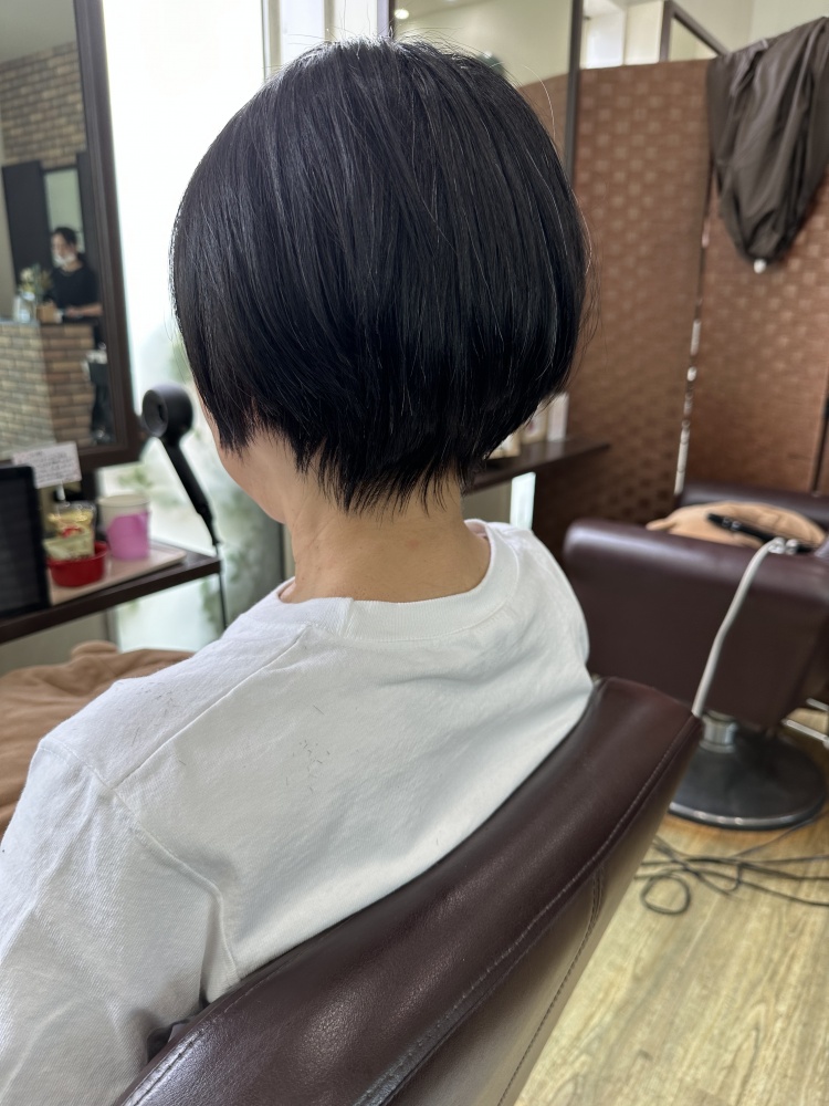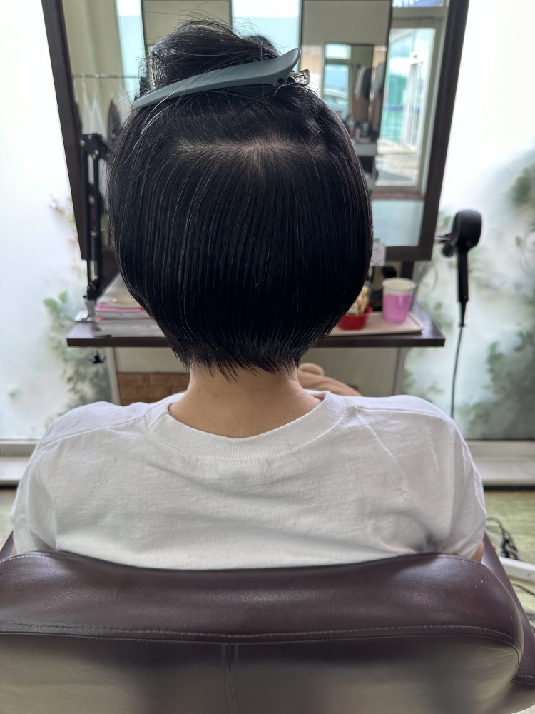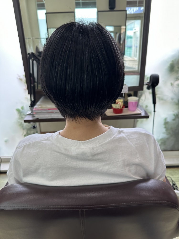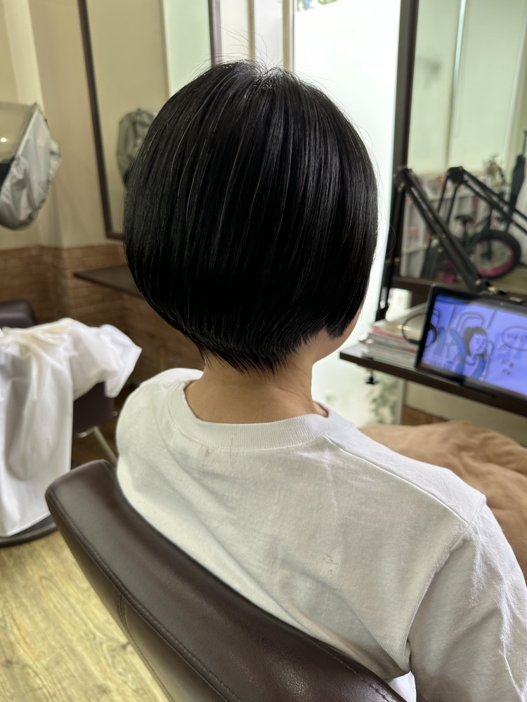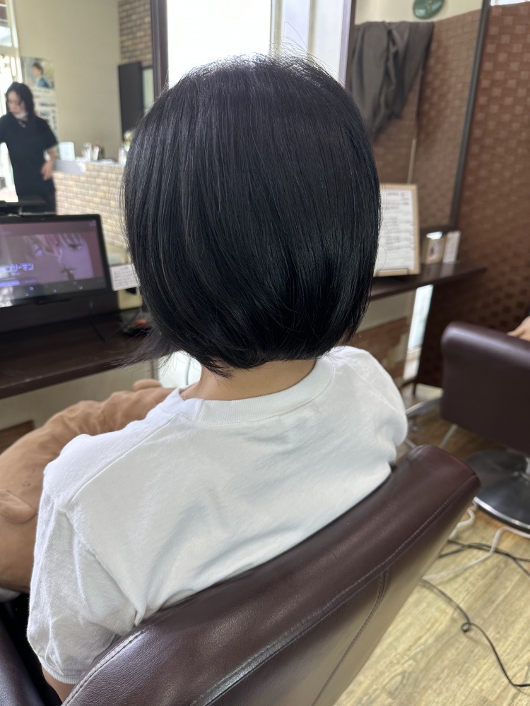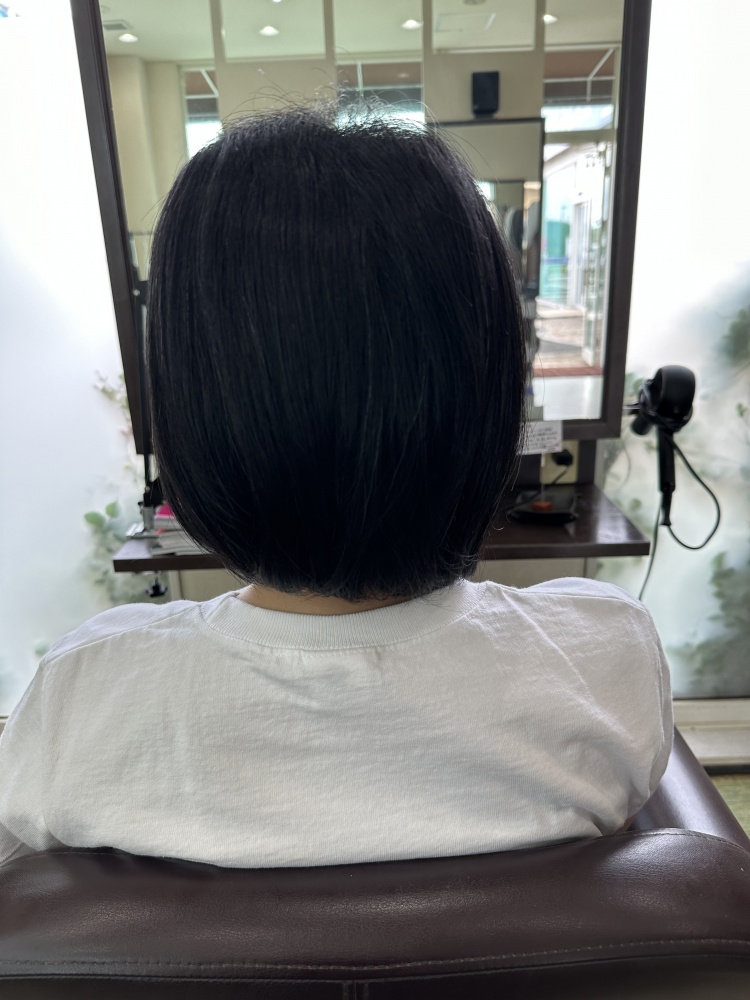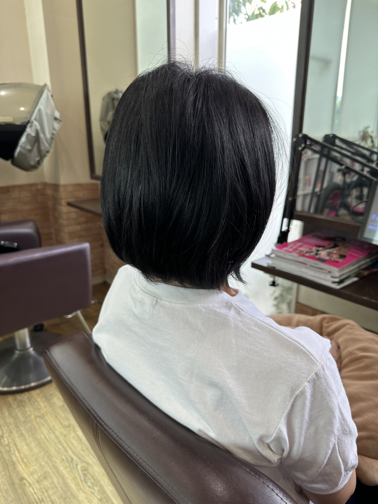 今回はカットも耳下1〜2センチのショートカットのマッシュまでカット!伸ばそうとしてたのですが暑いからもう髪いらないと。スマホに画像持って来てくれててそのお写真が耳が出るくらいベリーショートで可愛がったですが、短いと縮毛矯正の寿命も短いので気持ち長めでかつ似合ってた長さ、耳下1〜2センチまでばっさり切りました!仕上がり良かったですよ☺️