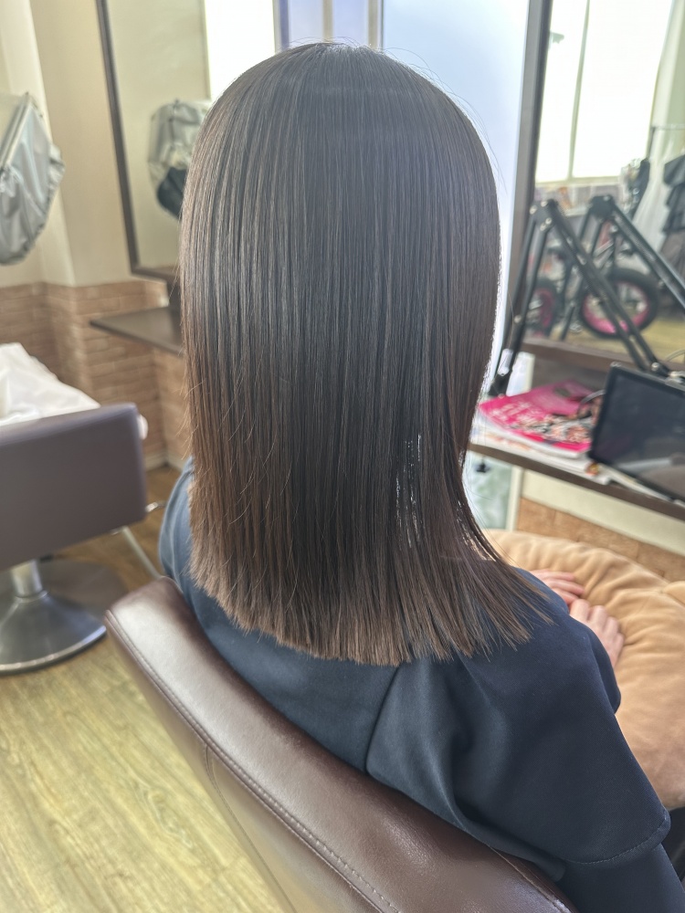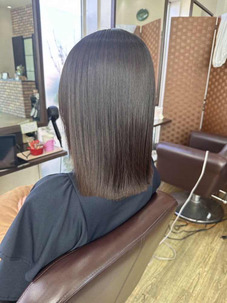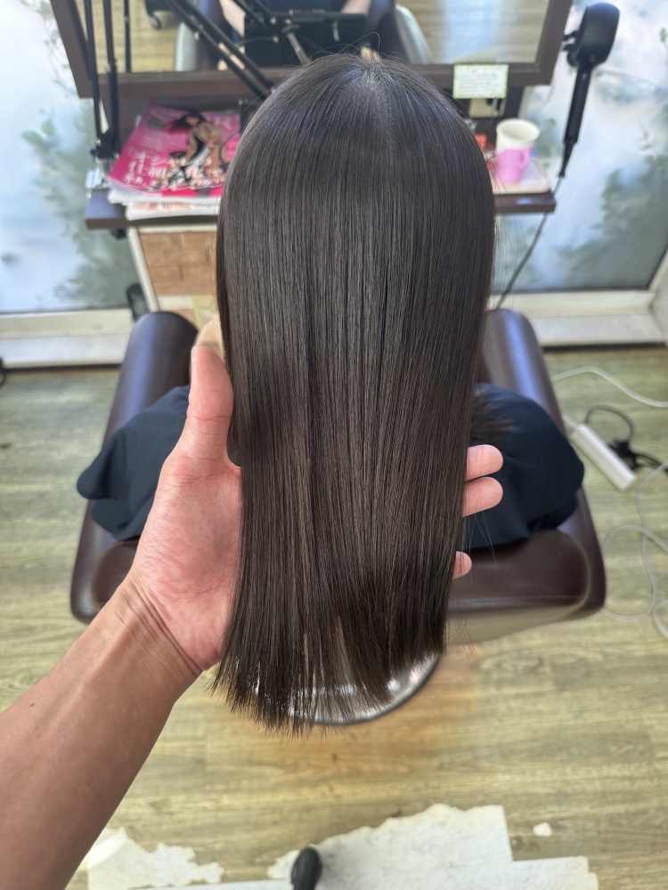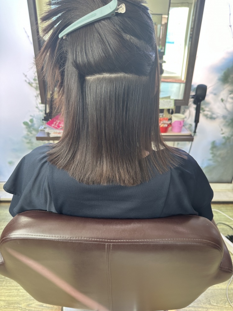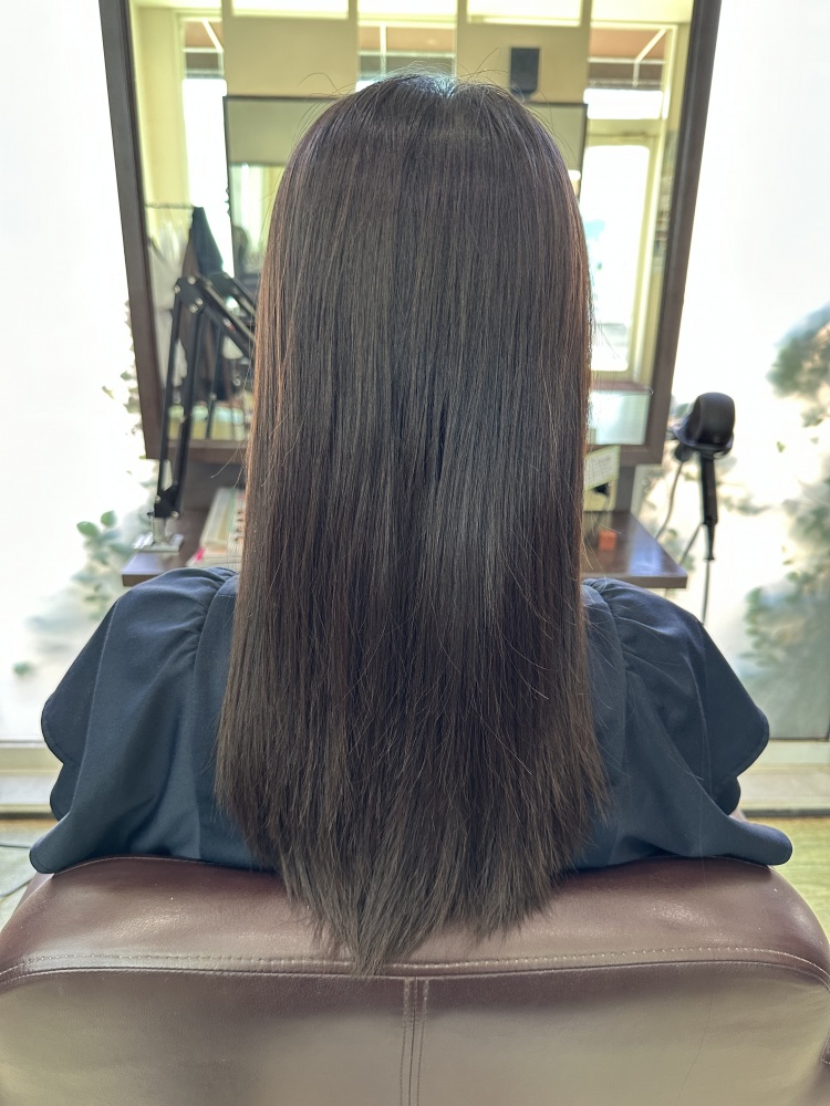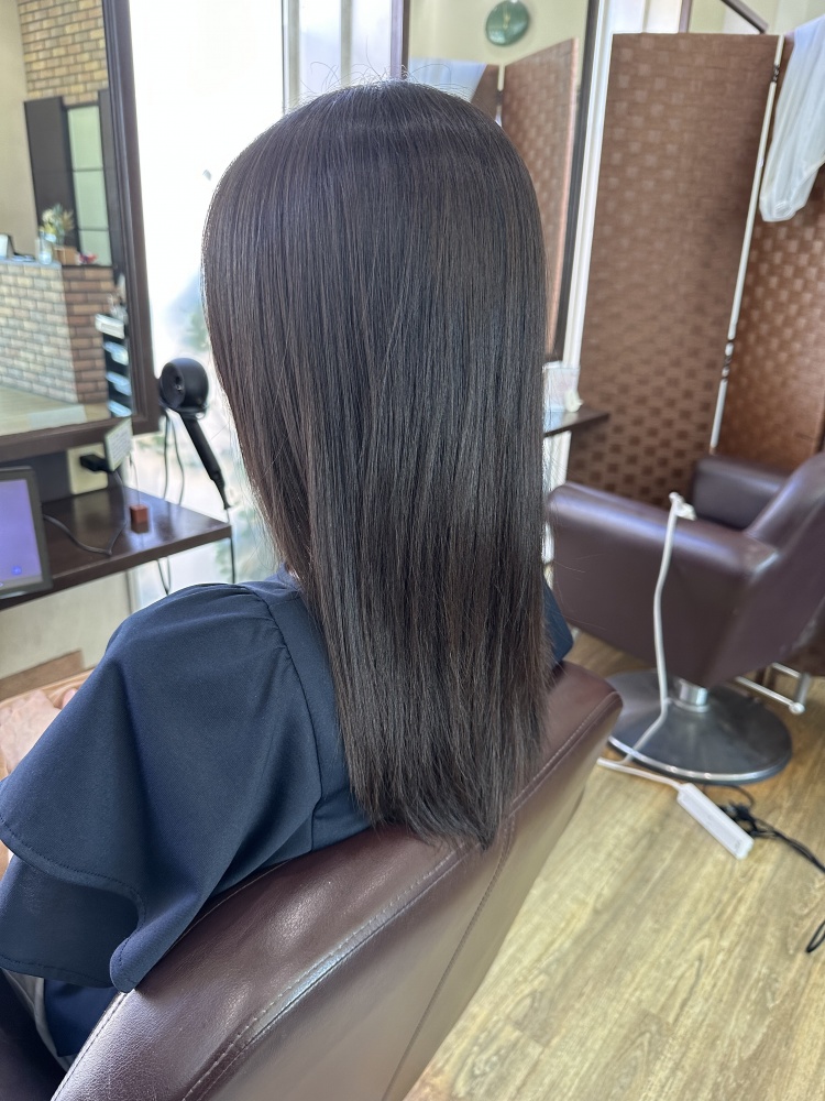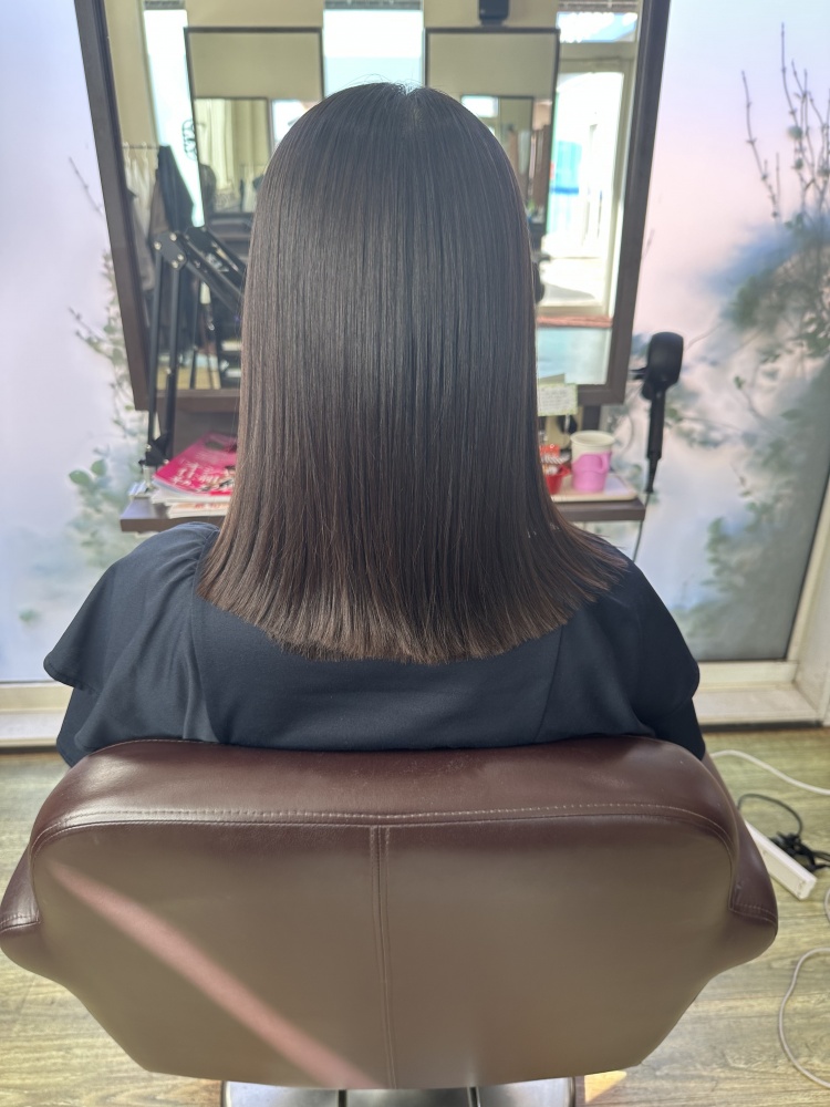 6ヶ月ペースで縮毛矯正の顧客様です。わかりづらいですがこの方も癖っ毛強いです!今回は鎖骨くらいまでばっさり切って縮毛矯正して参ります。