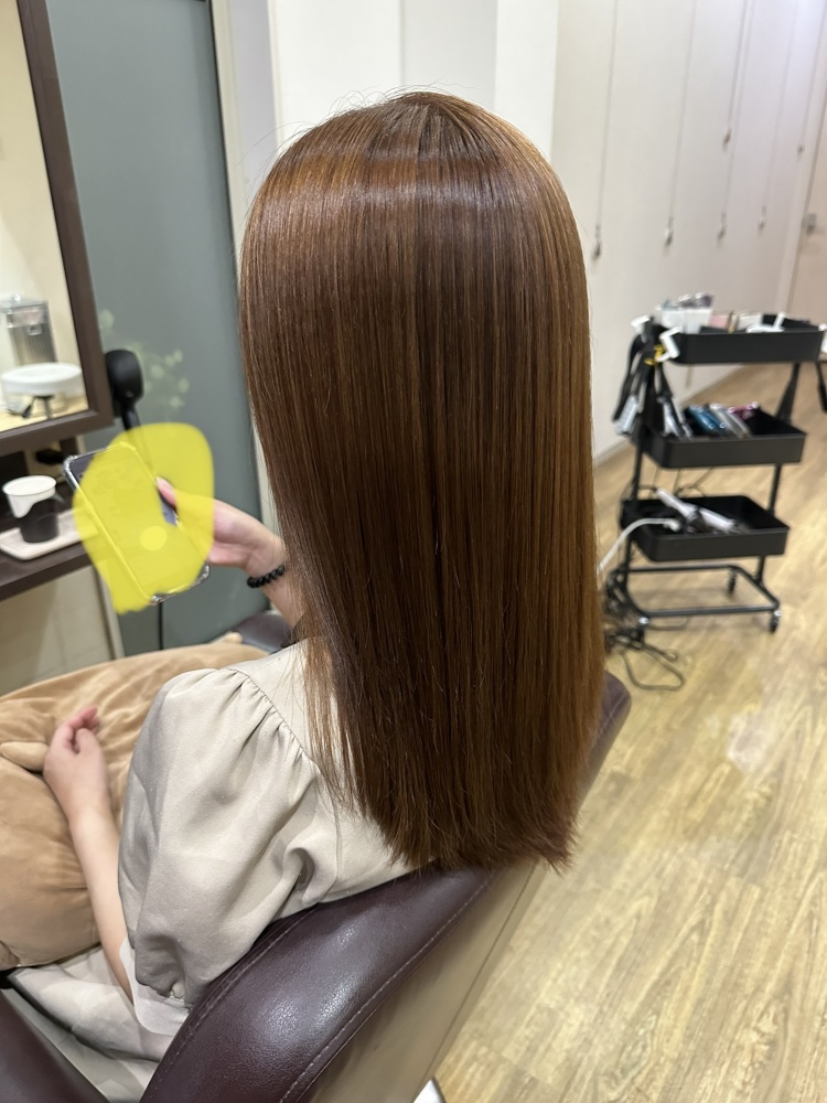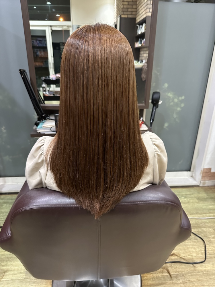 今回のポイントはカットと根本の縮毛矯正の伸びと毛先の自然さですね