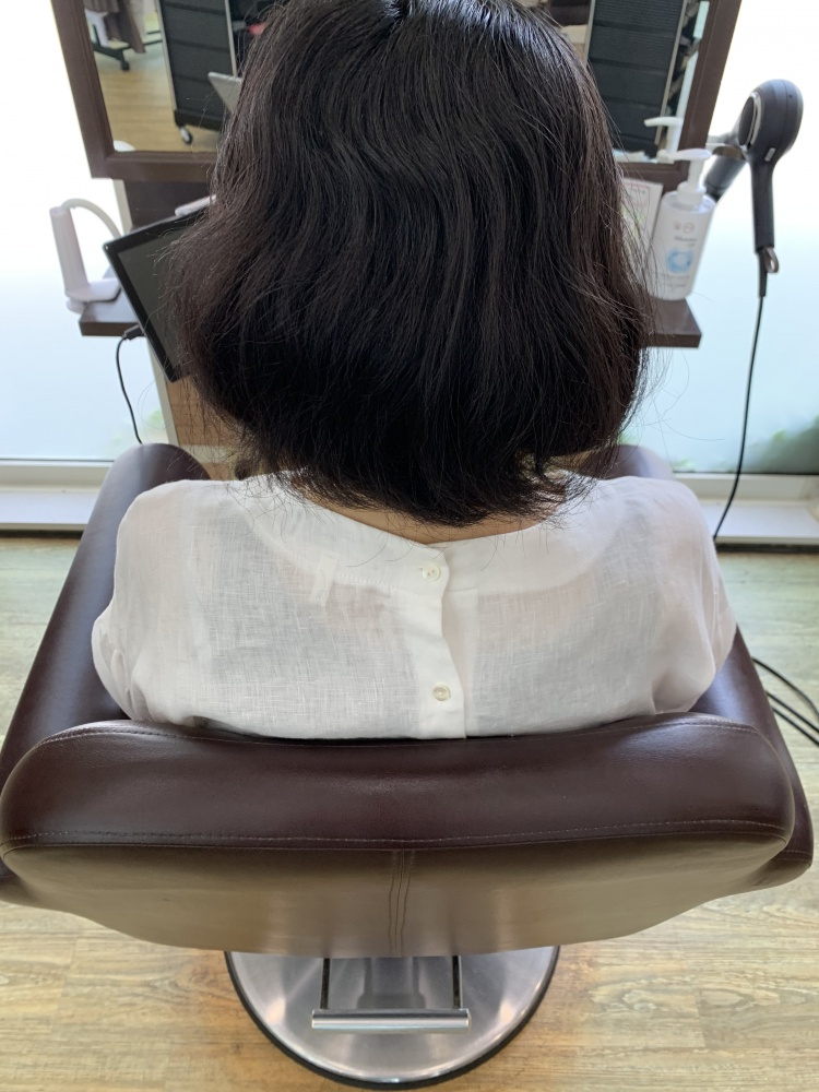 今回の施術ではカットを綺麗に切って縮毛矯正は癖っ毛を伸ばしながら自然な丸みや毛流れを作るのが目的です。