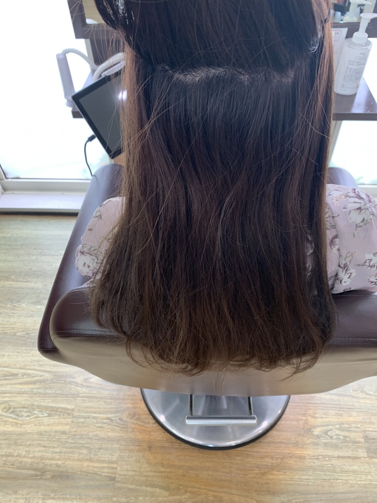 いつも6〜10ヶ月ペースで縮毛矯正の顧客様、カラーは他店様で3ヶ月ペースです。