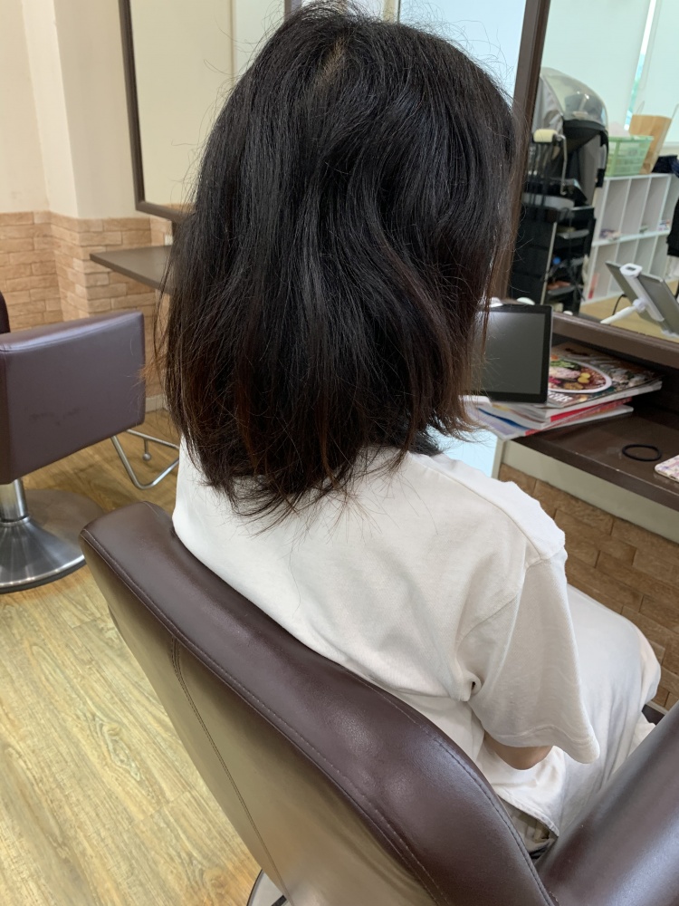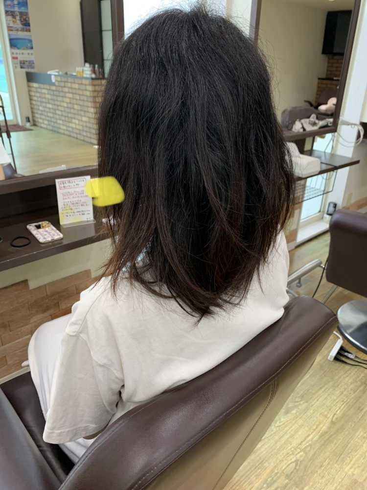 根本の癖っ毛さんを伸ばしながらの自然な質感を目指しました!これ、正面から見たがめちゃ可愛くて綺麗でしたね、正面は写真撮ってないから無いです。