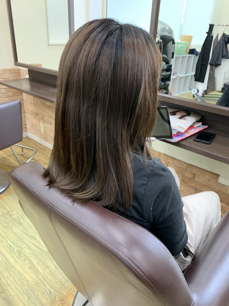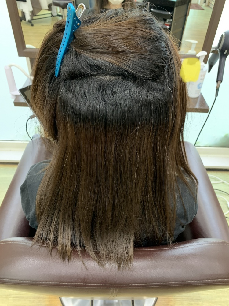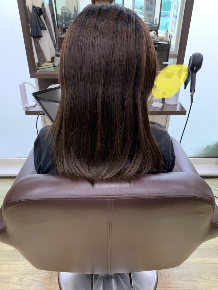 ・ダメージはカラーダメージと毎日のアイロンダメージあり、元の髪がしっかりしてるが毛先はダメージ強め