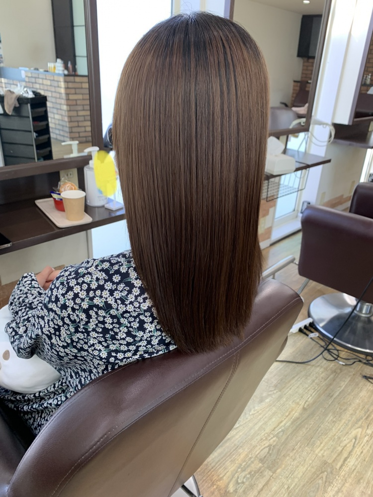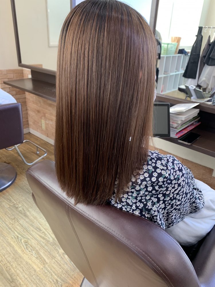 癖っ毛が無くなったので手触りが抜群に向上致しました!見た目も真っ直ぐで艶々です、ボリューム感もかなりコンパクトになりました!イメチェン大成功です✨