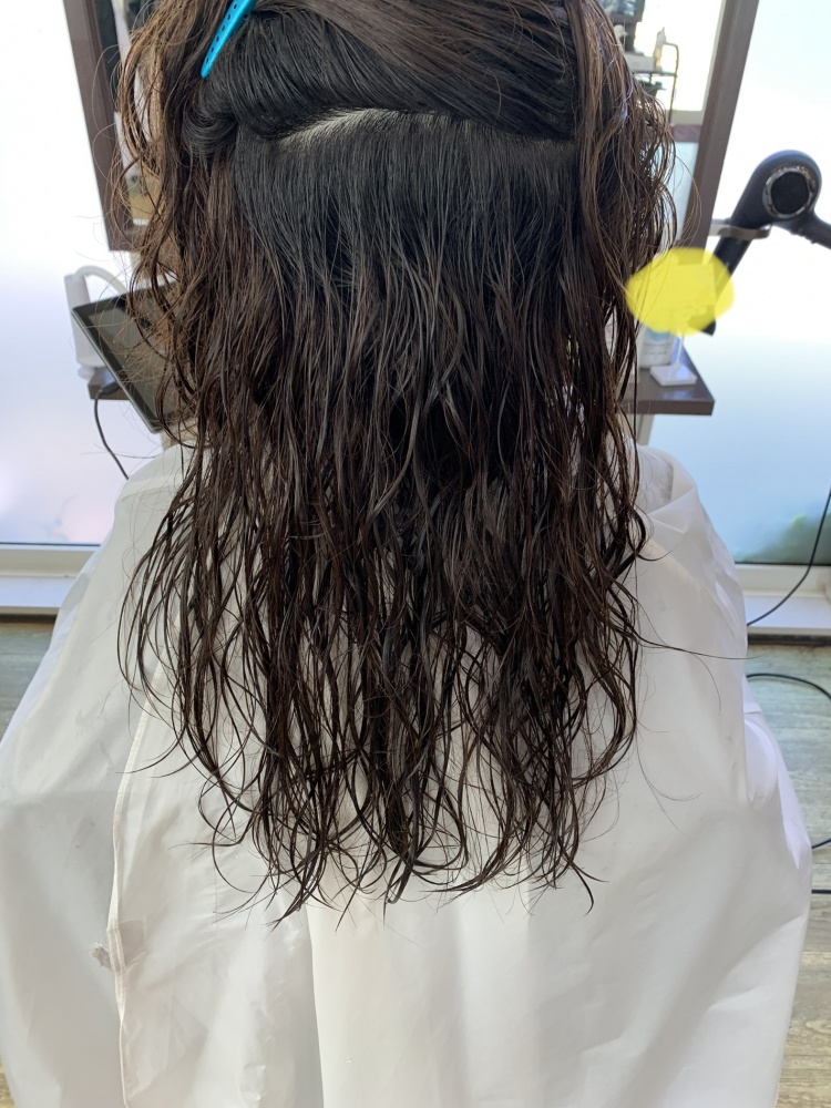 癖っ毛さんがしっかりあるタイプですのでしっかりと薬剤を効かせてアイロンもしっかり熱入れしないと癖っ毛伸び甘くなりやすいタイプになりますね。