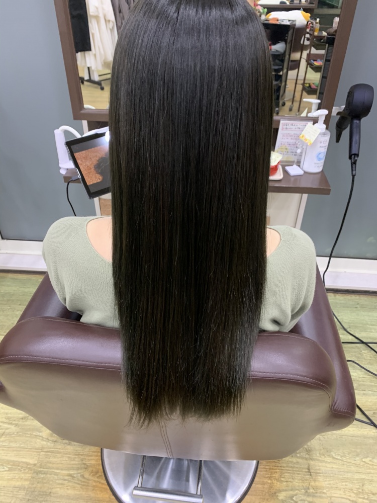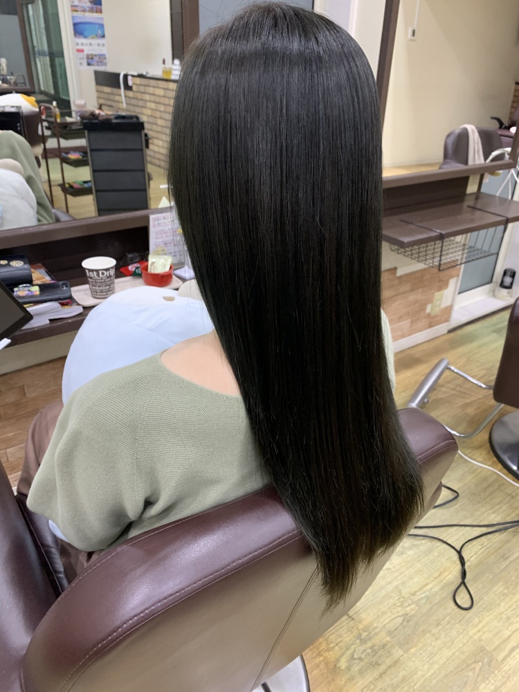 こちらは2週間前に縮毛矯正されたお客様がカラーに来て頂いた時の染め上がりアフター写真です、綺麗に染まりました✨