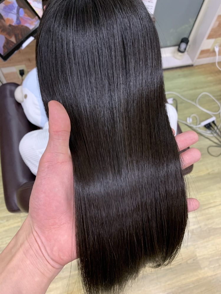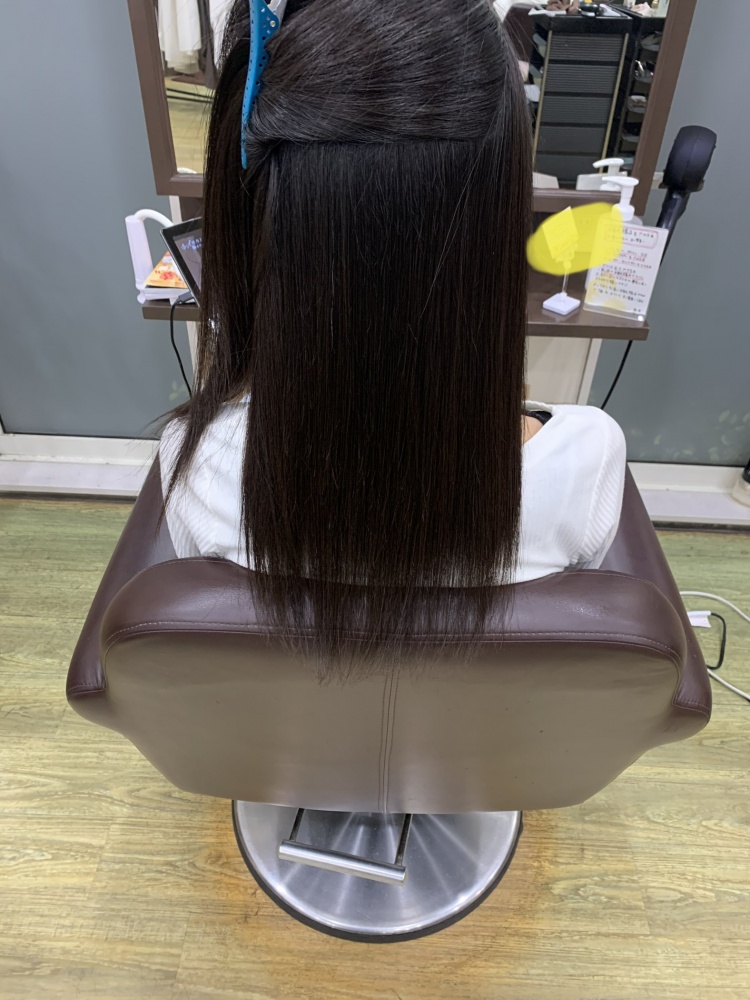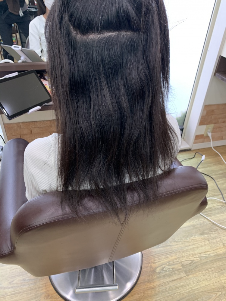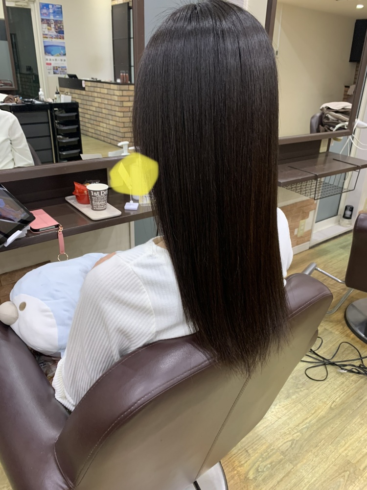 弱め薬剤をタイム長めに置いてアイロンは高温だけど1発で決めるやり方が1番綺麗になりやすいですね!不安になってアイロン2発入れる時もありますが1っ発で決めれた方が綺麗ですね、く、精進します。