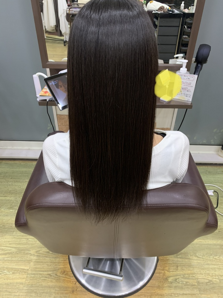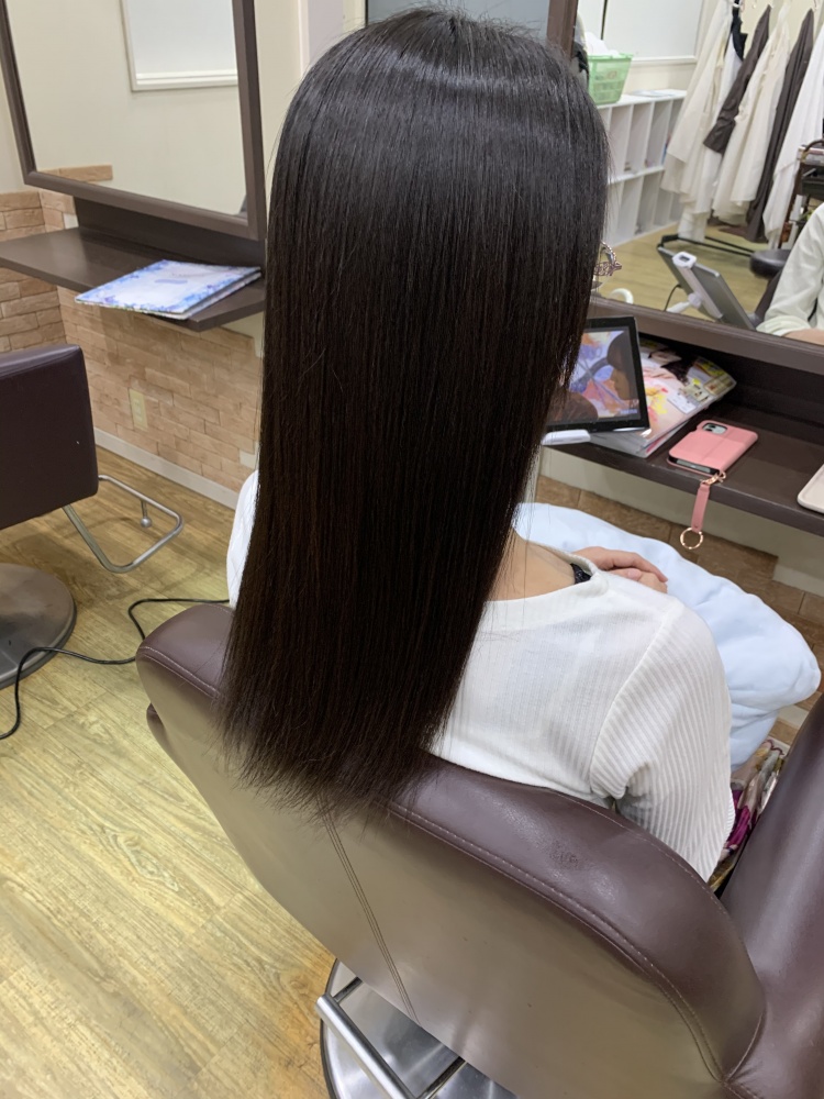 手触り抜群の縮毛矯正!毛先はトリートメント処方でダメージ補修してますのでよりさらさらです。