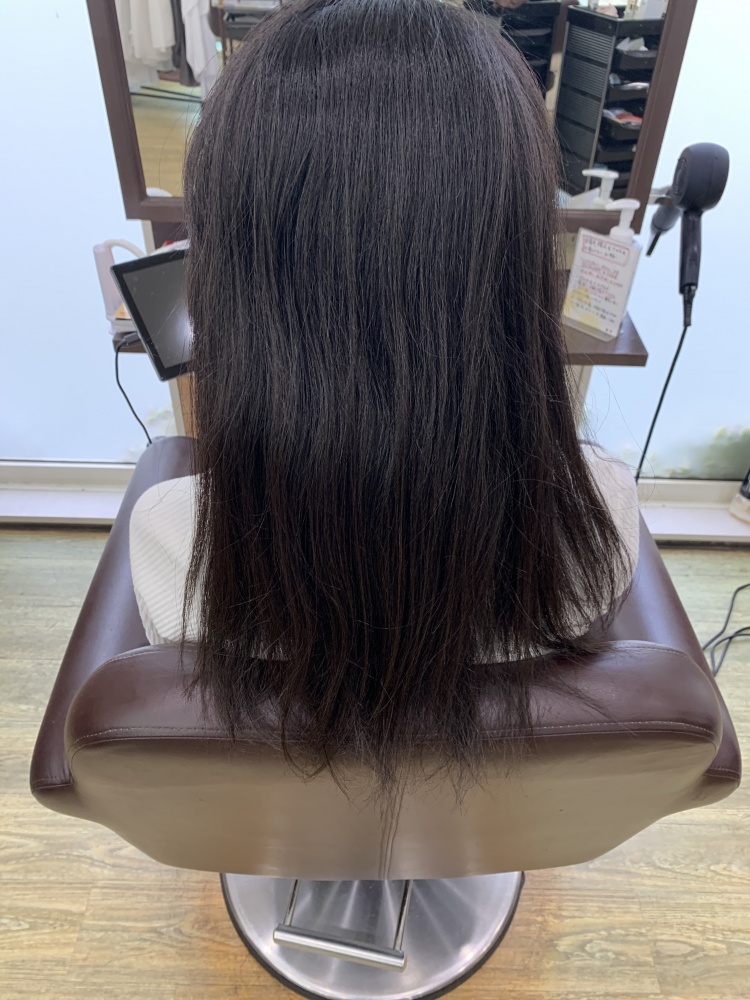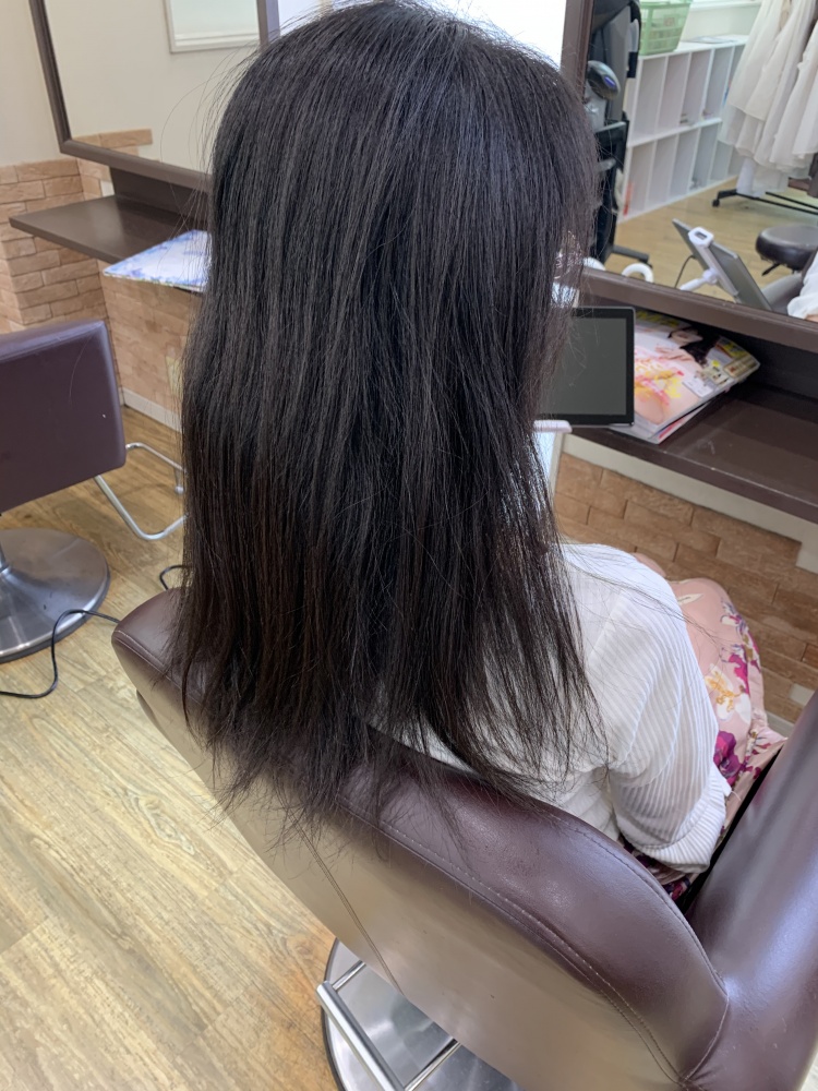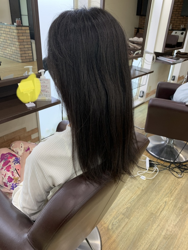 縮毛矯正はお久しぶりのお客様、かなり癖っ毛さんが出て来ております、毎日のアイロンじゃもう無理みたいとの事、頑張ってくれてありがとうございます!
