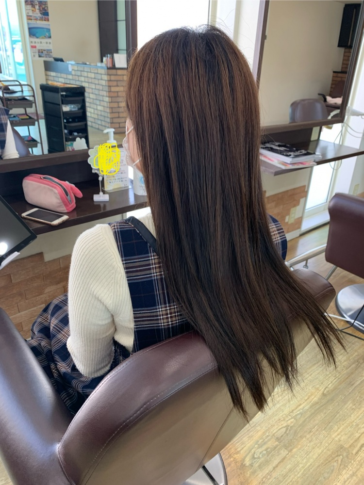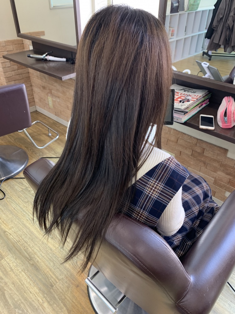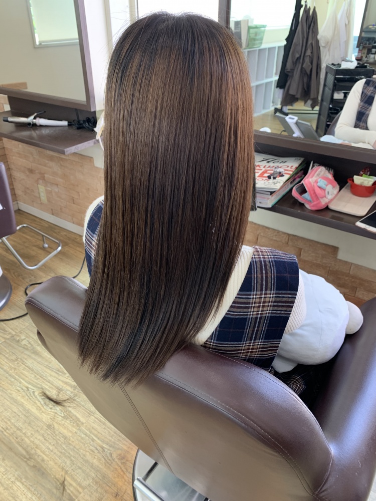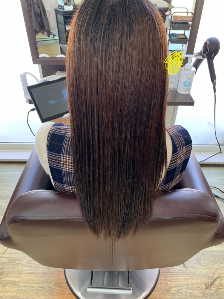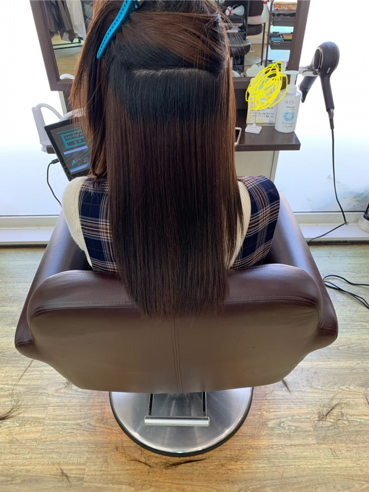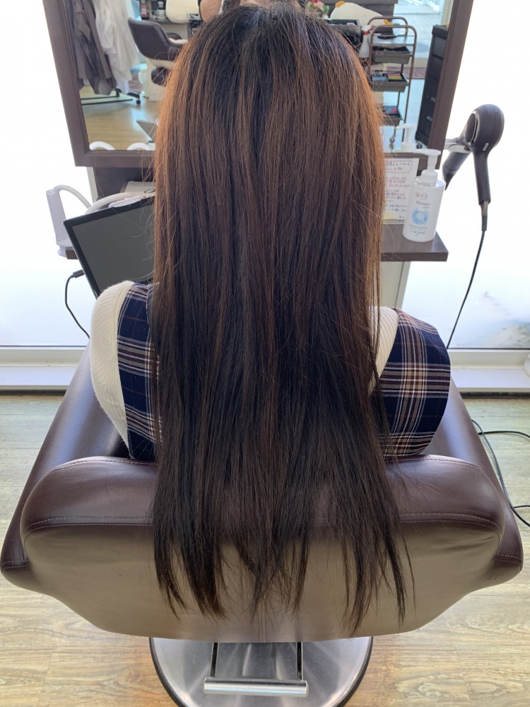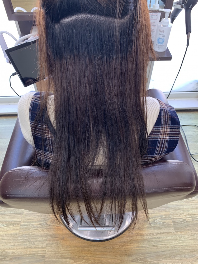 わかりずらいかもですがボワつきある癖っ毛が無くなって見た目の艶が向上しました!手触りもアップ!