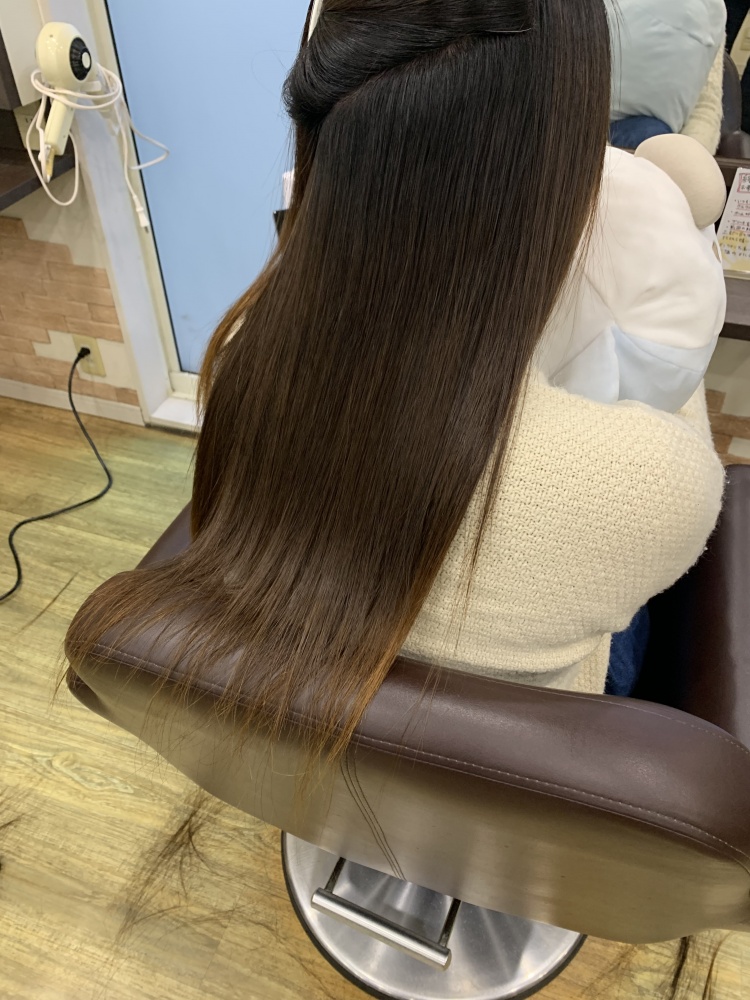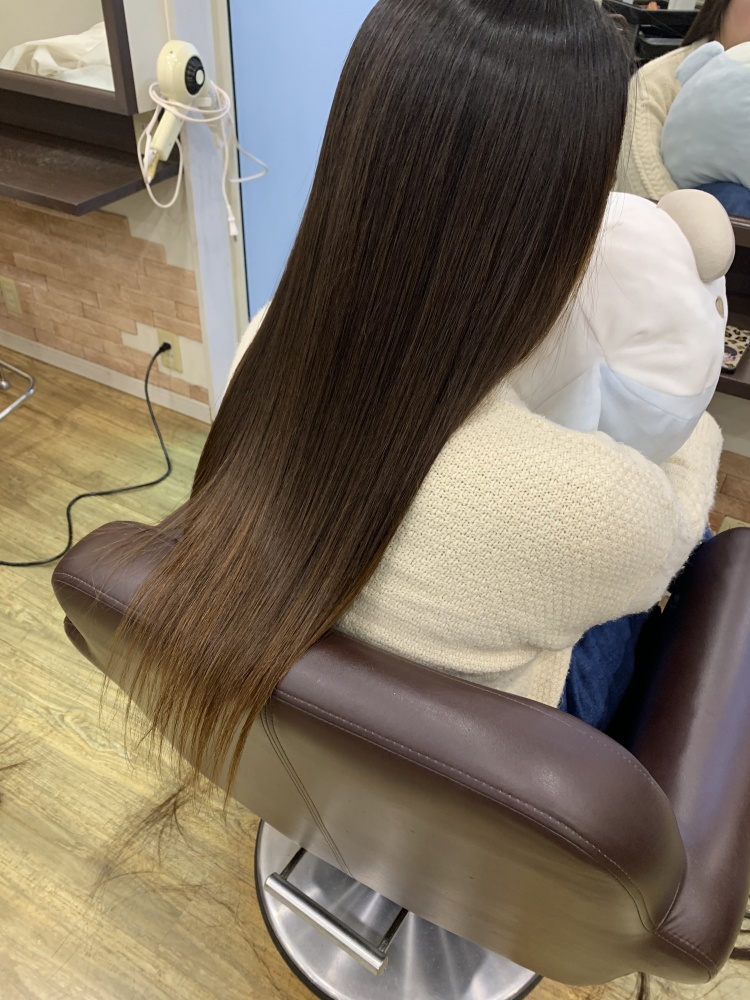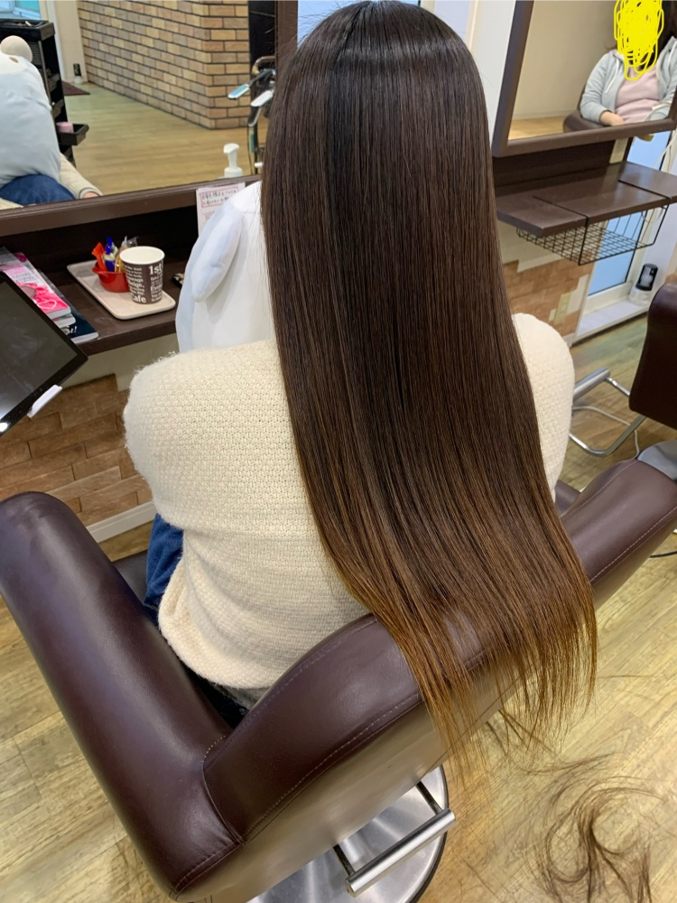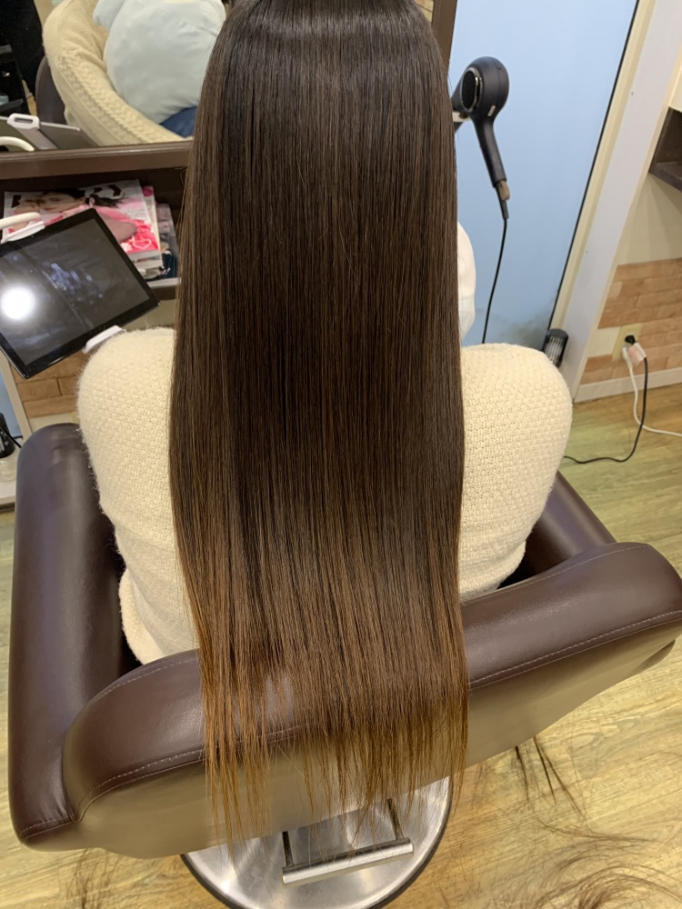 いつも定期的に縮毛処理来てくれてる顧客様、凄いロングでさらさらです✨こう見えて癖っ毛強めでボリュームが強く出るタイプ、ある一定期間経つと頭が大きく見えるみたいですね、綺麗にさせて頂きました!