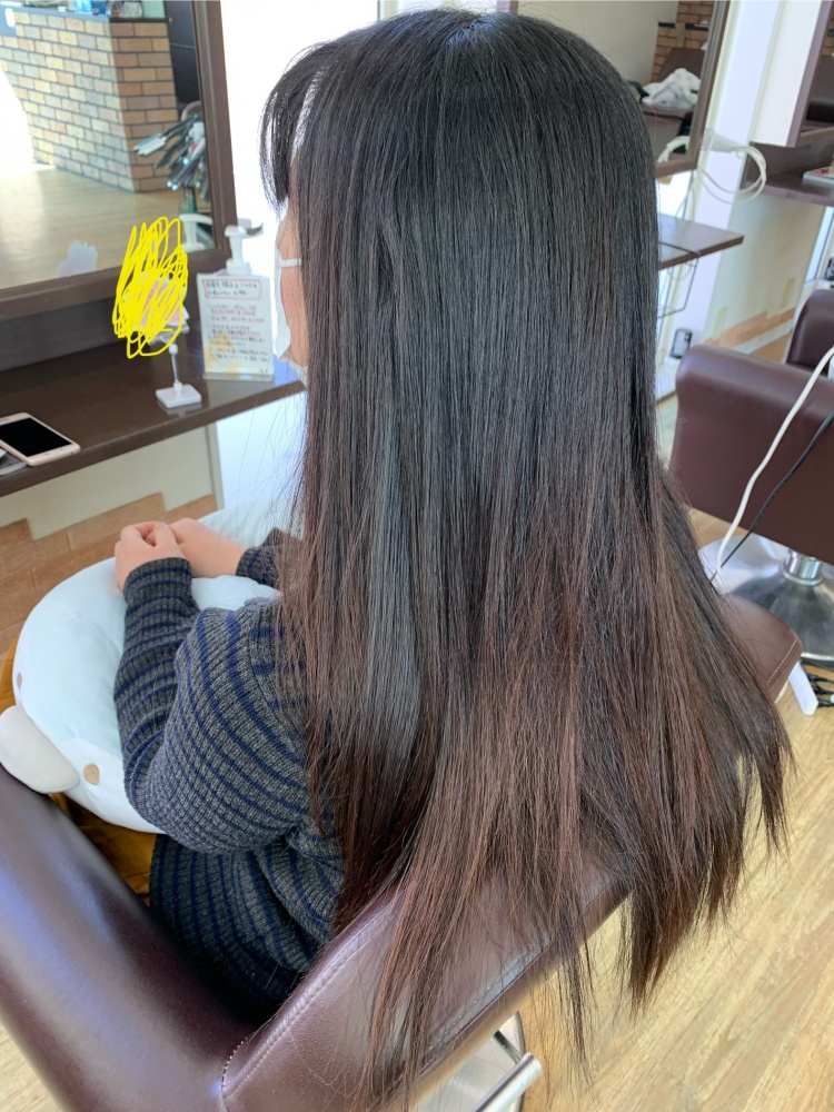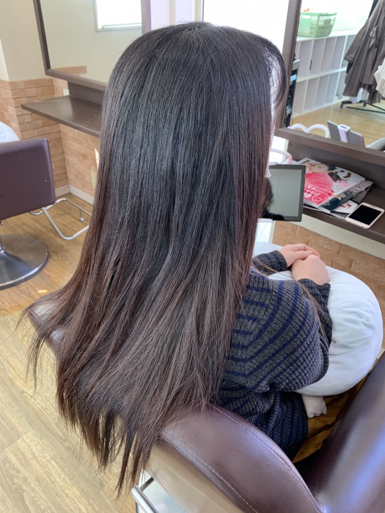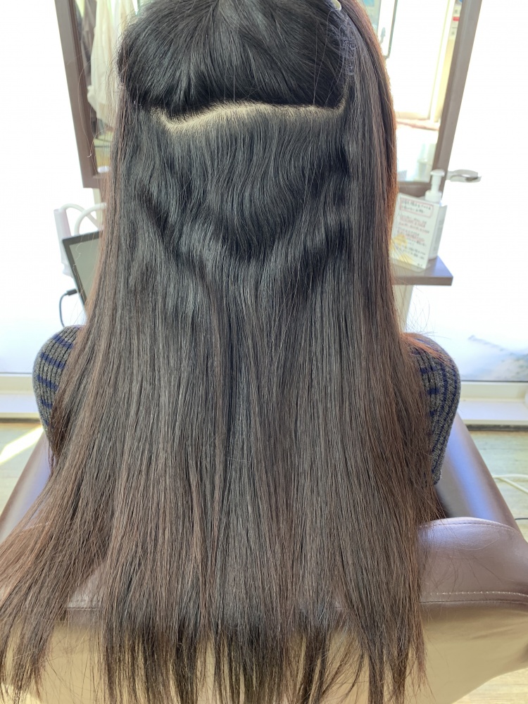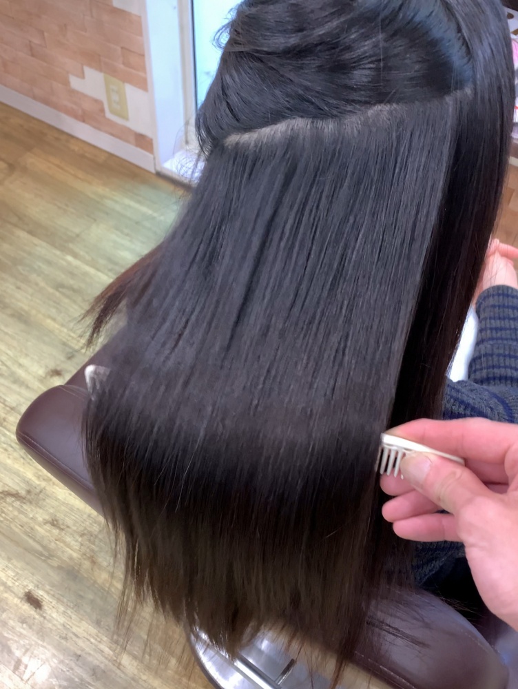わかりにくいかもですが癖っ毛が根本のキワキワから伸びてサラサラになりました!アイロン細かくの賜物ですね✨