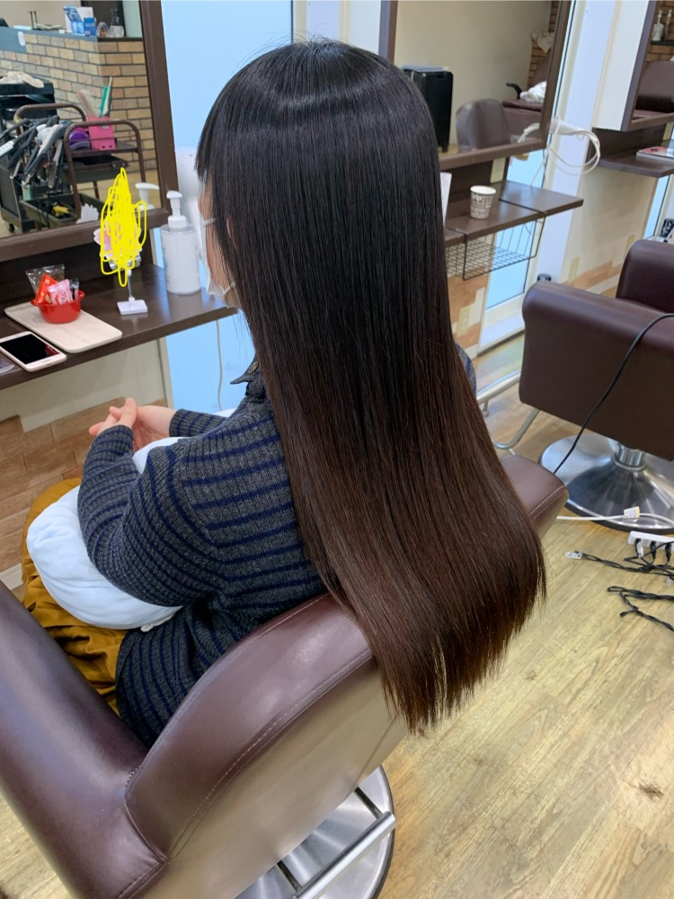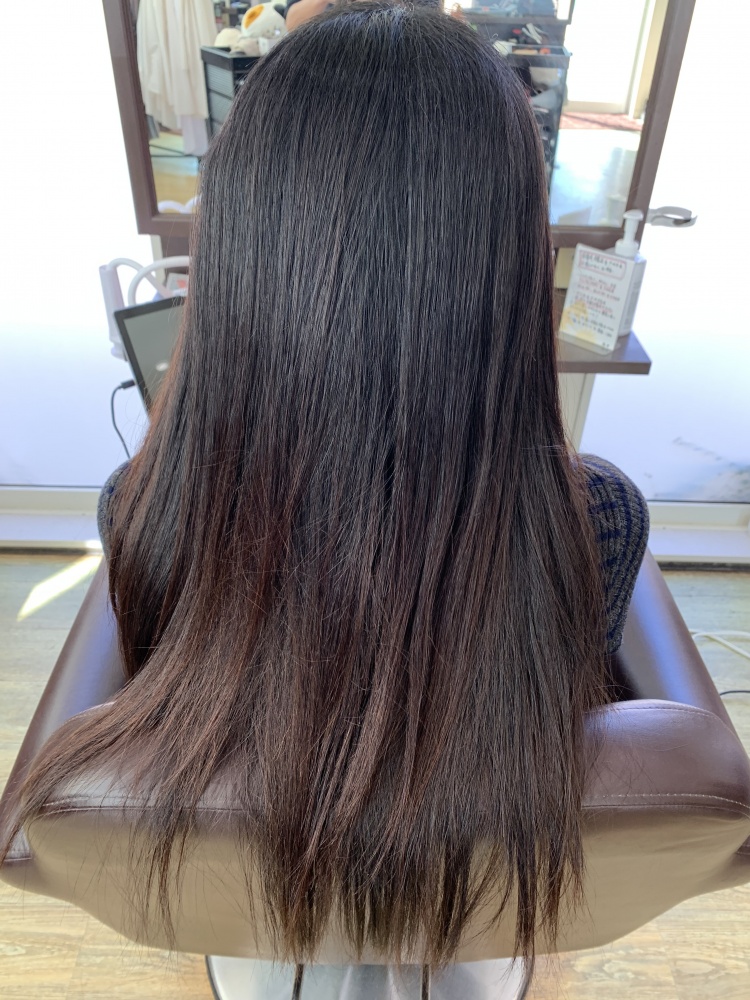 いつも半年〜1年ペースで縮毛矯正の顧客様、なかなか癖っ毛が強く他店様だと癖っ毛が伸びない、もしくは伸びてもバサバサになるみたいでうちでかけたら綺麗なストレートになると言ってくださいます、嬉しい☺️
