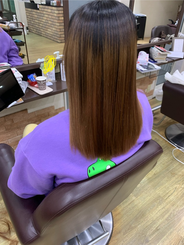 いつも来てくださる顧客様で縮毛矯正は6〜8ヶ月ペース、カラーも3〜5ヶ月くらいのお客様です。